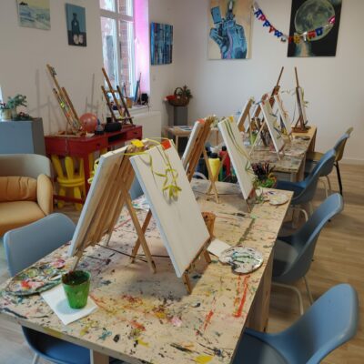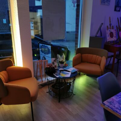 Hier, im Künstler-Atelier von Tess Peartree finden unter anderem Ausstellungen und Malkurse statt. Meld dich zum Newsletter an um keine Termine zu verpassen. Hier klicken.